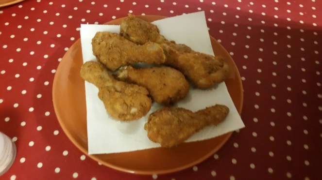 Today’s culinary voyage was inspired by Sarah fancying some chicken from the famous fried chicken shop with the red and white sign. I decided that with a little research, my spice shelf, a kilo of chicken drumsticks and a deep fryer (I know, I know) I could probably produce something similar. Many people claim to have found the secret spice mix. My quick simple version is a variation of those that others have shared online, using ingredients readily available in UK supermarkets. It does taste very similar to the fast-food version and at least I know where my chicken has come from this way. Enjoy.